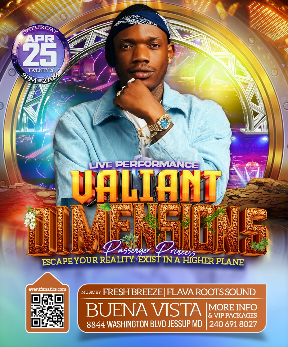 ‼️🔥DMV GET READY….. @valiant_music | @xycloneofficial PERFORMING LIVE IN THE DMV ON SATURDAY APRIL 25, 2026 @DIMENSIONSDMV ⏰ 9PM – 2AM 📍 Buena Vista - 8844 Washington Blvd, Jessup, MD 🎫 EARLY BIRD TICKETS ARE AVAILABLE‼️ EVENTFANATICS.COM 📲 More INFO & VIP PACKAGES🍾🥂 240.691.8027