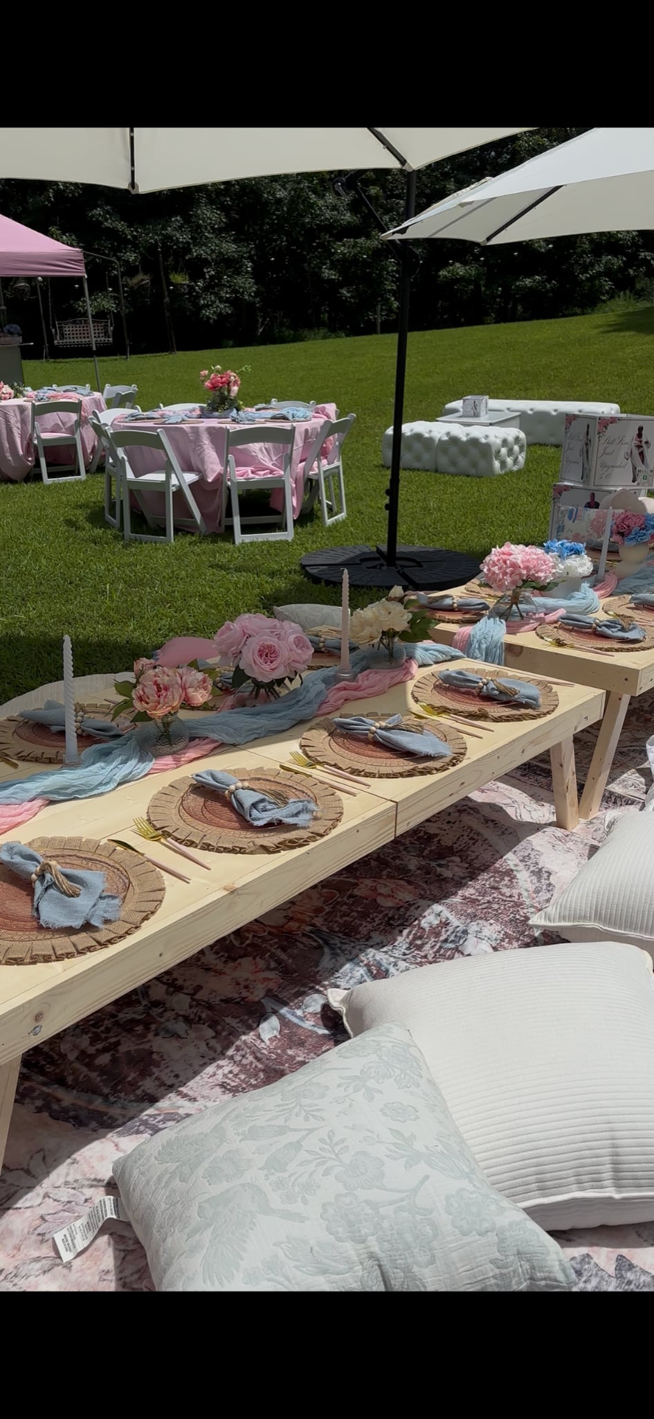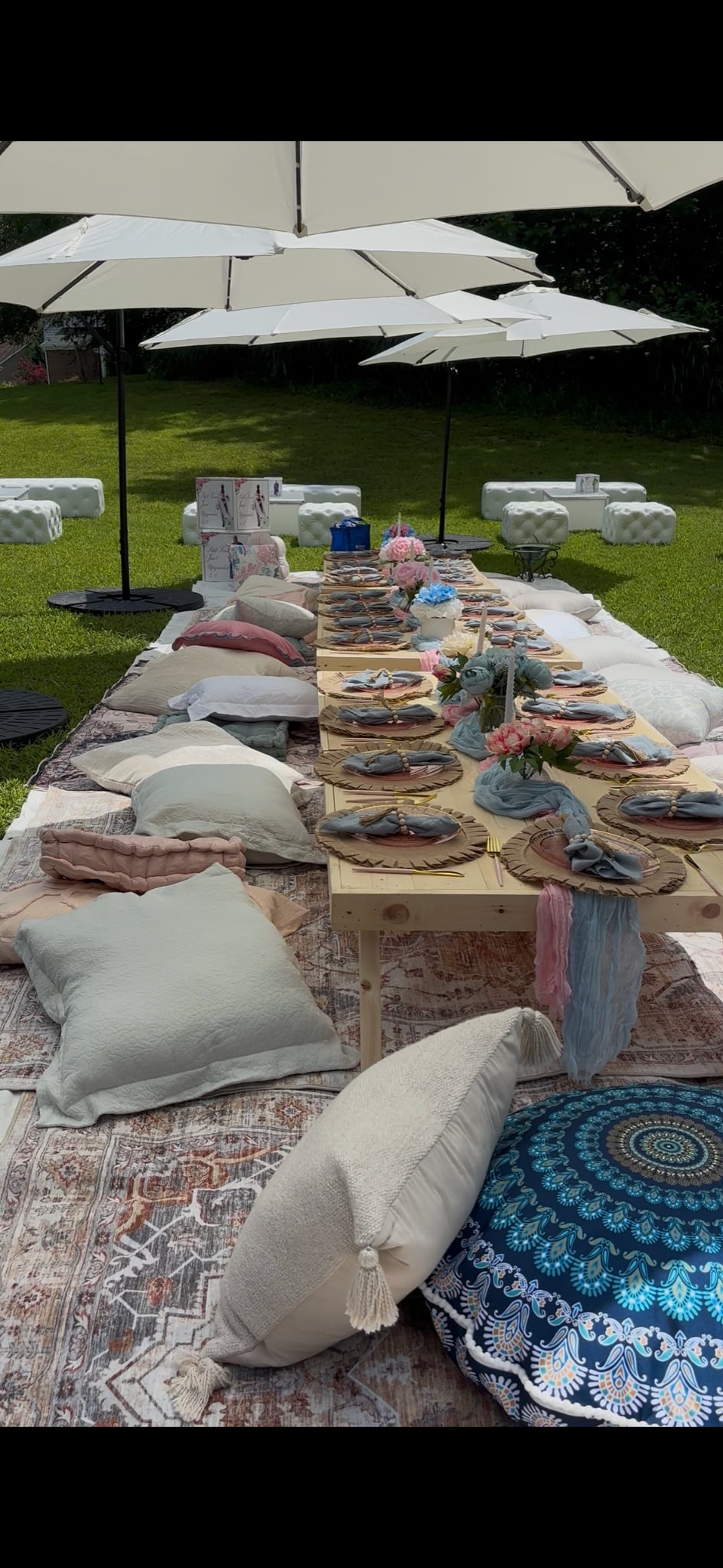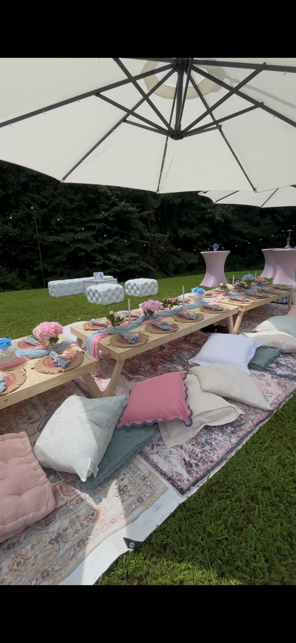 Elevate your outdoor or indoor event with our 72" x 35" Low Picnic Table, designed specifically for luxury picnics, boho-themed gatherings, intimate celebrations, and styled photo shoots. This low-profile table sits just inches from the ground—perfect for cushion seating, rugs, and cozy setups. Crafted with durable wood and a smooth finish, it provides a sturdy and beautiful centerpiece for events of any style. Its long, rectangular design comfortably seats 6–10 guests, making it ideal for birthdays, proposals, baby showers, girls’ nights, brunches, and outdoor dining experiences. Features Dimensions: 72" (L) × 35" (W) Low-to-ground design for floor seating Sturdy & stable wood construction Smooth tabletop suitable for décor, florals, and full place settings Perfect for luxury picnics & boho setups Seats 6–10 guests comfortably Perfect For Luxury picnics Kids’ parties Bridal showers & baby showers Romantic picnics Outdoor dinners Beach or park events Event planners & stylists